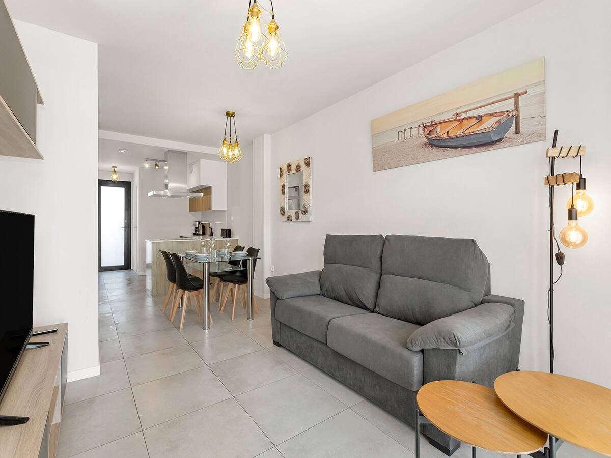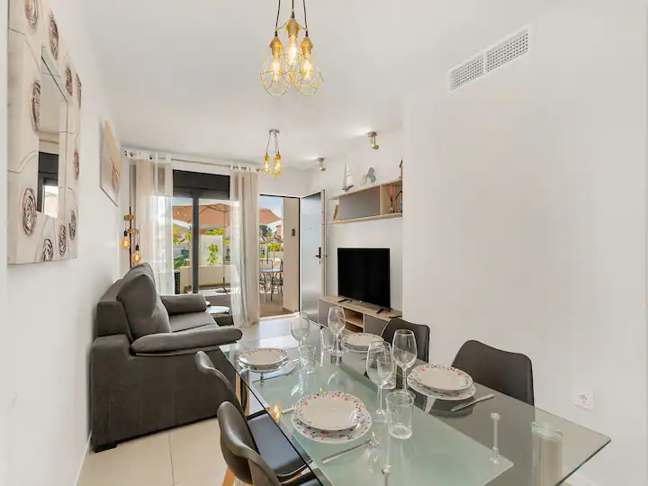 I invite you to an apartment on the ground floor in the picturesque area of Mil Palmeras, where luxury meets functionality, creating an ideal place for families with children. Immediately you are charmed by a modern living room connected to a kitchen with everything you need. The apartment offers two comfortable bedrooms, each providing privacy and comfort. The main advantage of this apartment is its charming terrace overlooking the pool.