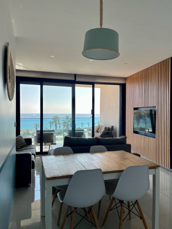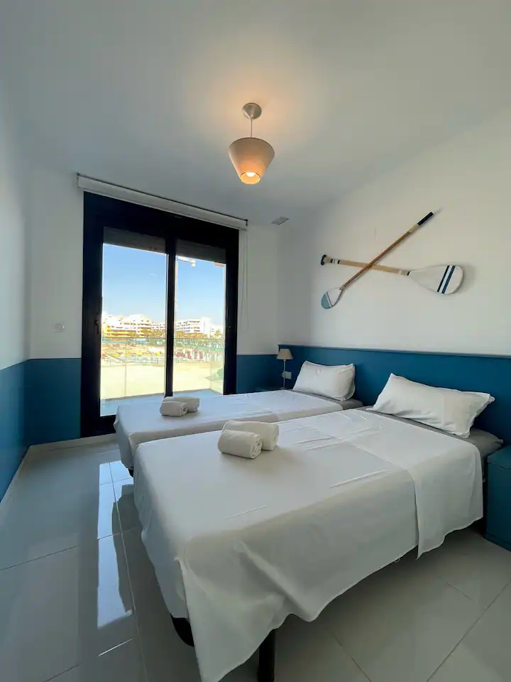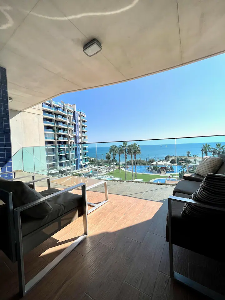 This unique place has its own style. Welcome to our charming two-bedroom apartment, which is the perfect place for your stay in Punta Prima. This stylish apartment in a complex with lots of pools, children’s slides, a gym, a paddle court, and playgrounds is a true oasis of entertainment and comfort. It’s a great place for a family vacation, a romantic getaway, or a stay with friends. It’s a place where luxury blends with entertainment, and the view of the sea makes an unforgettable impression.